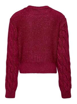 Maglia Only Kids. In granata. Maglia a maglia intrecciata. Collo tondo. Finitura a coste. Spalle cadenti e fondo più aderente.