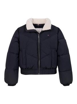 Giacca Tommy Hilfiger Collo Teddy Blu per ragazza