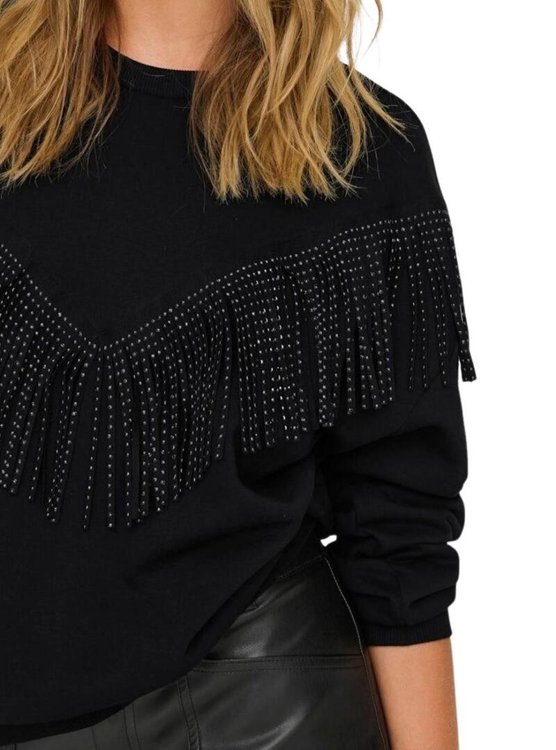 Felpa Only. Colore nero. Collo rotondo. Manica lunga. Dettaglio di frange con brillantini nella parte anteriore. Taglio regolare. Spalle cadenti.