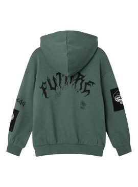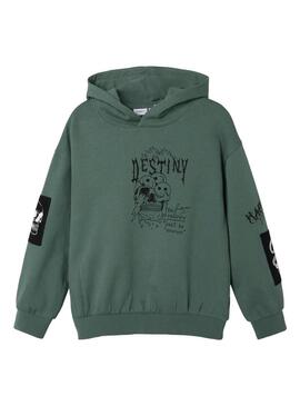 Felpa Name It. Modello Stroels. Colore verde. Con cappuccio. Manica lunga. Polsini e fondo elasticizzati. Stampa in gomma morbida sul davanti, dietro e sulle maniche. Vestibilità oversize.