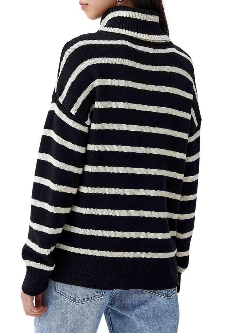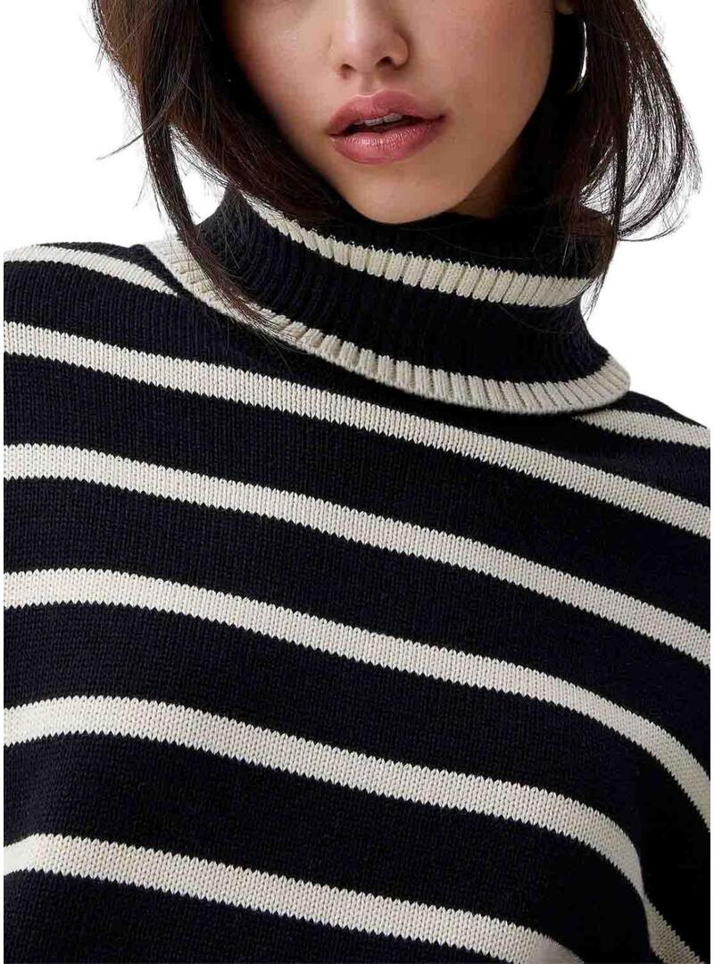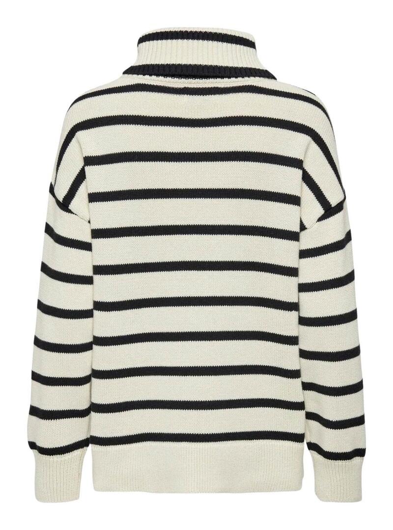 Maglia Only. Colore beige. Stampato a righe. Tessuto morbido a maglia. Manica lunga. Collo alto. Finiture a coste. Taglio regolare.