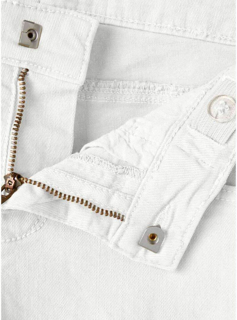 Pantaloncini corti Name It. Modello Rose Reg. Colore bianco. Tessuto in cotone a coste. Chiusura con gancio e cerniera. 5 tasche. Taglio regolare. Effetto consumato.