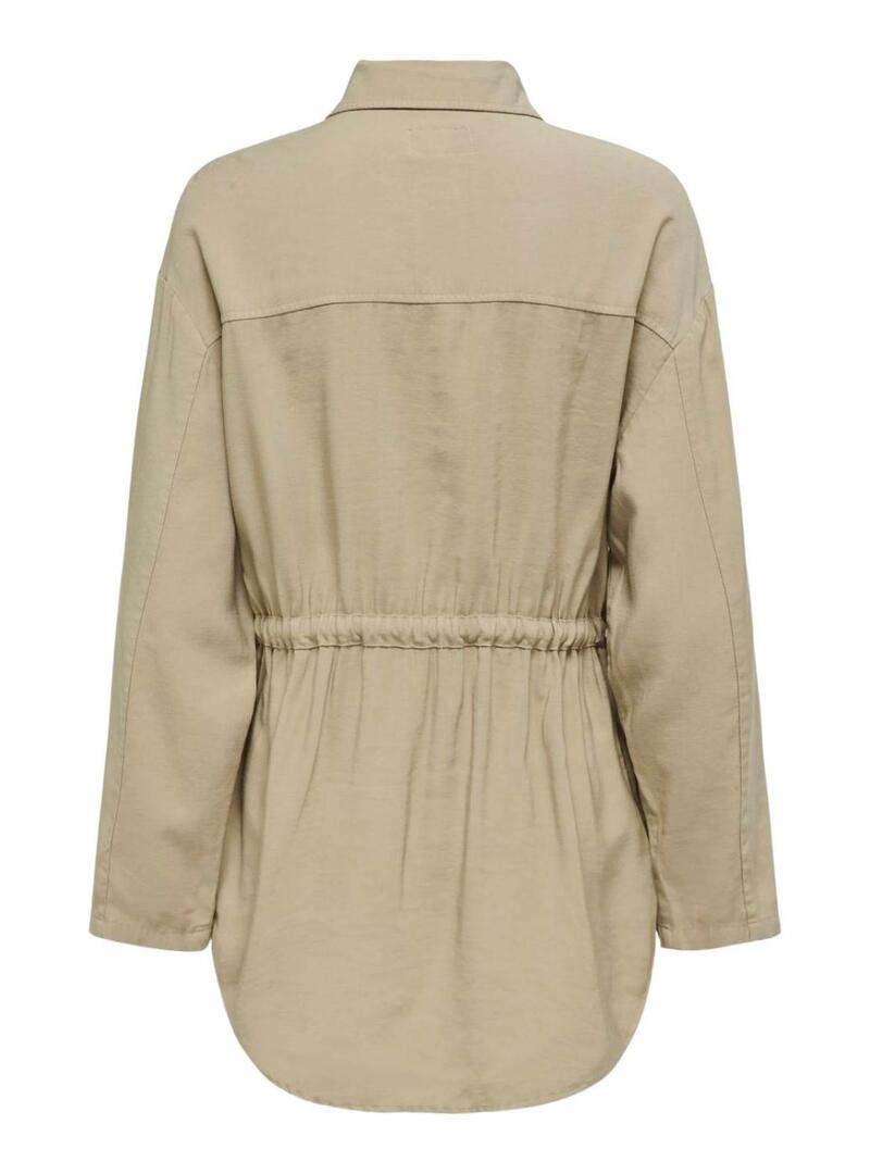 Giacca Only. Colore beige. Tessuto leggero. Colletto alla italiana. Tasche sul petto con patta. Vita regolabile con coulisse. Fondo arrotondato. Manica lunga. Chiusura con bottoni. Taglio regolare. Il modello indossa la taglia S.