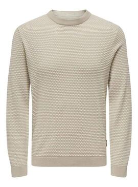 Maglia Only and Sons. Colore beige. Maglia a coste strutturata. Collo rotondo. Manica lunga. Vestibilità regolare.
