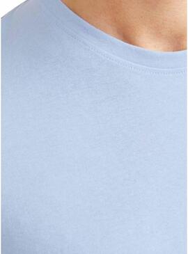 Maglietta Jack and Jones. Modello Simon. Colore azzurro chiaro. Collo rotondo. Manica corta. Logo circolare stampato sul petto. Stile basico.