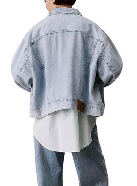 Giacca di jeans Calvin Klein Jeans. Modello Boxy. Denim chiaro. Vestibilità oversize. Spalle cadenti. Chiusura con bottoni metallici. Tasche laterali. Tasche applicate sul petto con patta. Logo del marchio sul petto. Patch sul fondo della schiena.