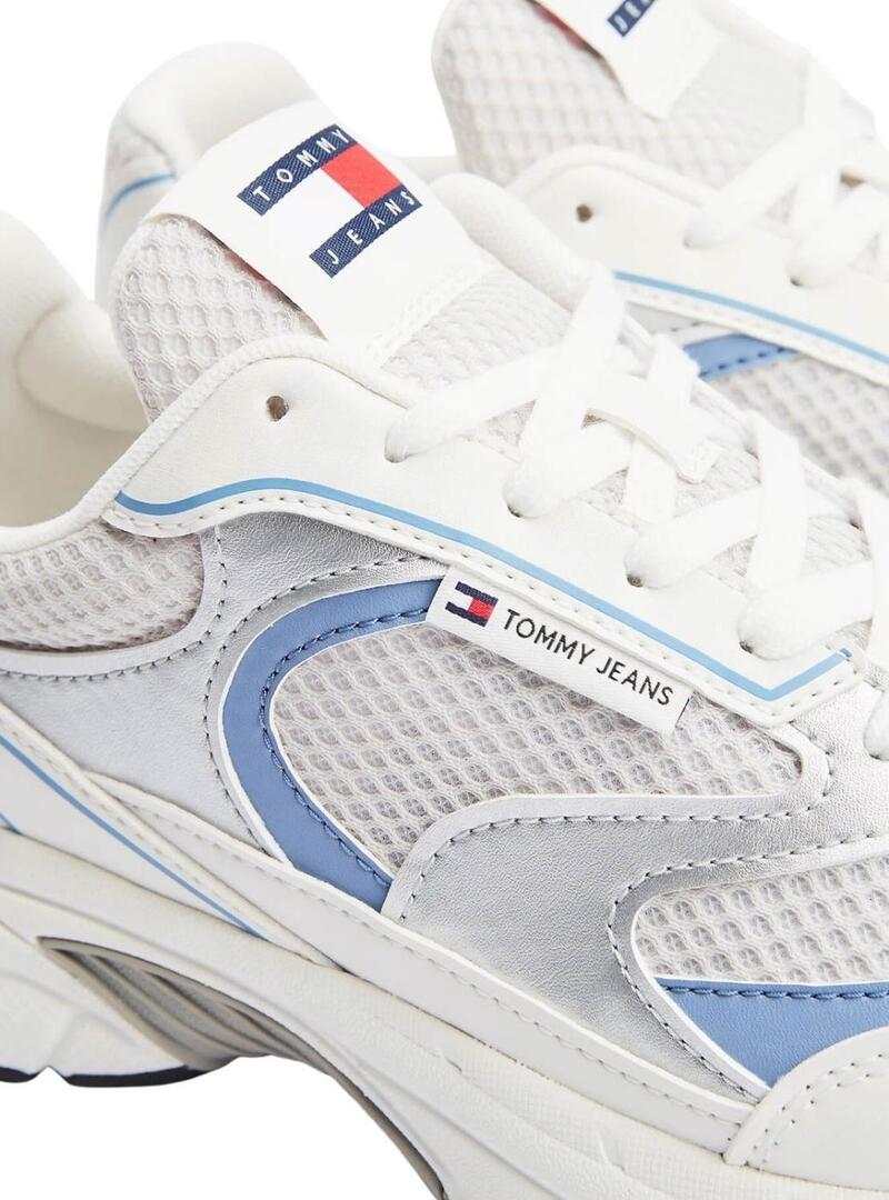 Scarpe Tommy Jeans. Modello The Coney. Colore bianco. Dettagli in colore blu. Chiusura con lacci. Logo del marchio sulla linguetta. Suola in EVA. Taglio basso.