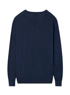 Maglia Silbon. Modello a V. Colore blu scuro. Collo a V. Stile basico. Orli a costine. Vestibilità regolare. Logo ricamato sul petto.