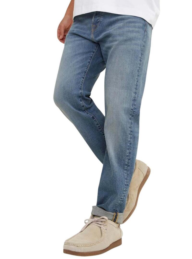 Pantaloni in denim Jack and Jones. Modello Mike. Chiusura a bottone. 5 tasche. Effetto consumato. Taglio conico.