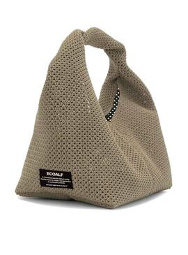 Borsa Ecoalf. Modello Tikaalf mini. Colore topo. Struttura a maglia aperta. Manico intrecciato. Chiusura a bottone a pressione. Etichetta del marchio sul lato. Dimensioni: 30 x 23 x 15 cm.