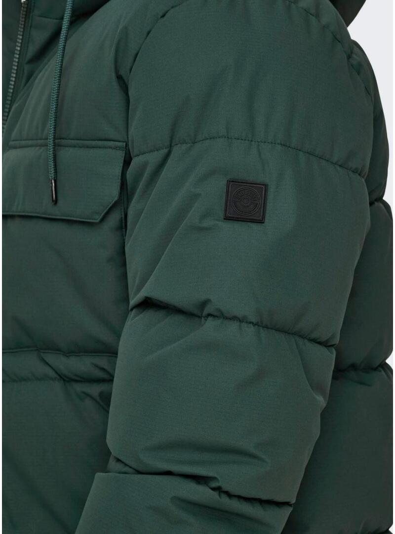 Giacca Only and Sons. Modello Selijah. Cappuccio regolabile con cordino. Chiusura lampo. 4 tasche. Imbottitura. Resistente al vento.