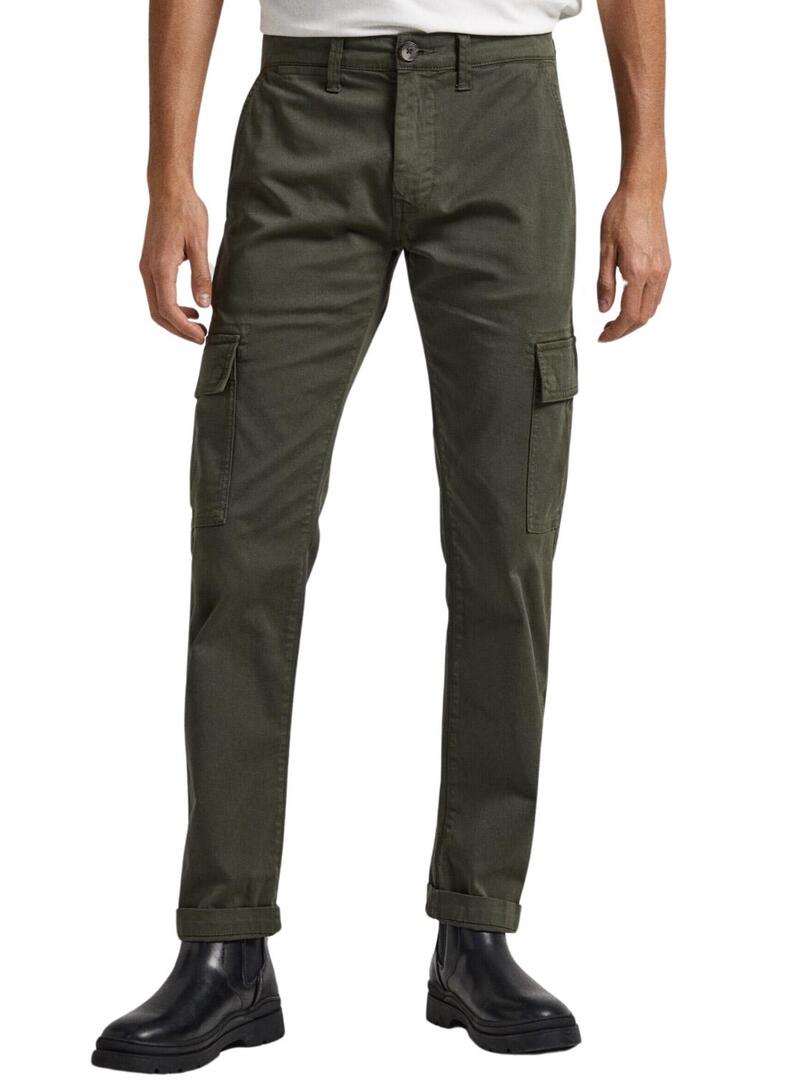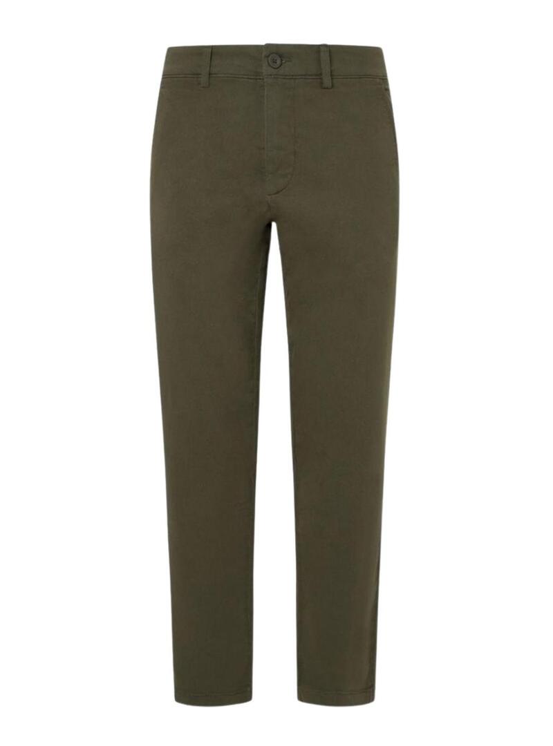 Pantaloni Pepe Jeans. Modello Comfort Chino. Colore blu scuro. Vita elastica con cordino regolabile. Taglio slim. Tasche laterali. Tasche a filetto posteriori. Etichetta del marchio.