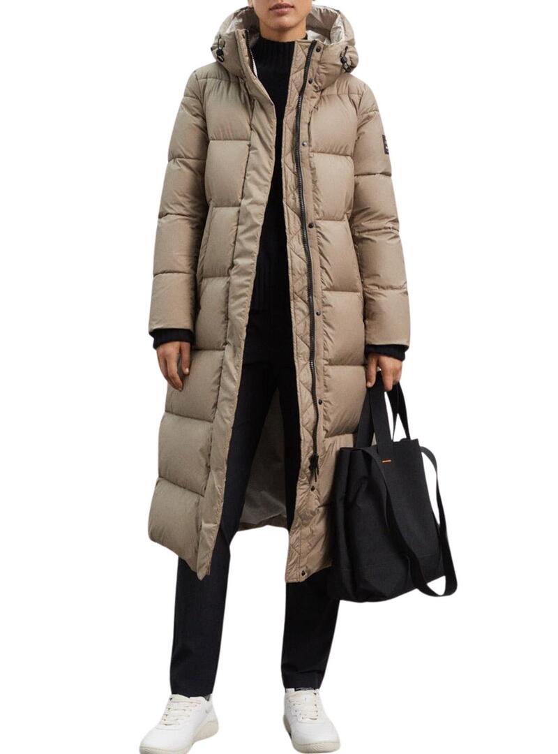 Giacca Ecoalf. Modello Musa. Colore beige. Tessuto trapuntato. Chiusura a bottoni. Etichetta del marchio sul braccio. 2 tasche.