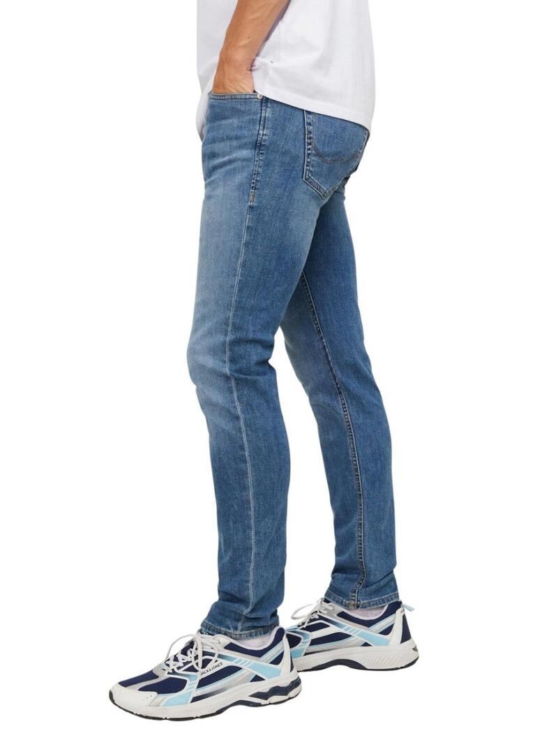 Pantaloni in denim Jack and Jones. Modello Glenn. 5 tasche. Lavaggio medio. Chiusura con bottone e zip. Taglio slim. Girovita basso. Taglio aderente. Ginocchia strette, fondo stretto.