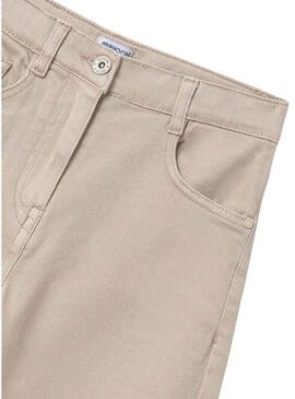 Pantaloni Mayoral. Colore beige. 5 tasche. Taglio largo. Tessuto di twill. Chiusura con zip e bottone.