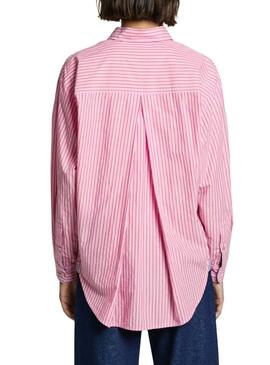 Camicia Pepe Jeans. Modello Charisma. Colore rosa. Stampato a righe. Maniche lunghe. Chiusura a bottoni. Taglio ampio. Pieghe sulla schiena.