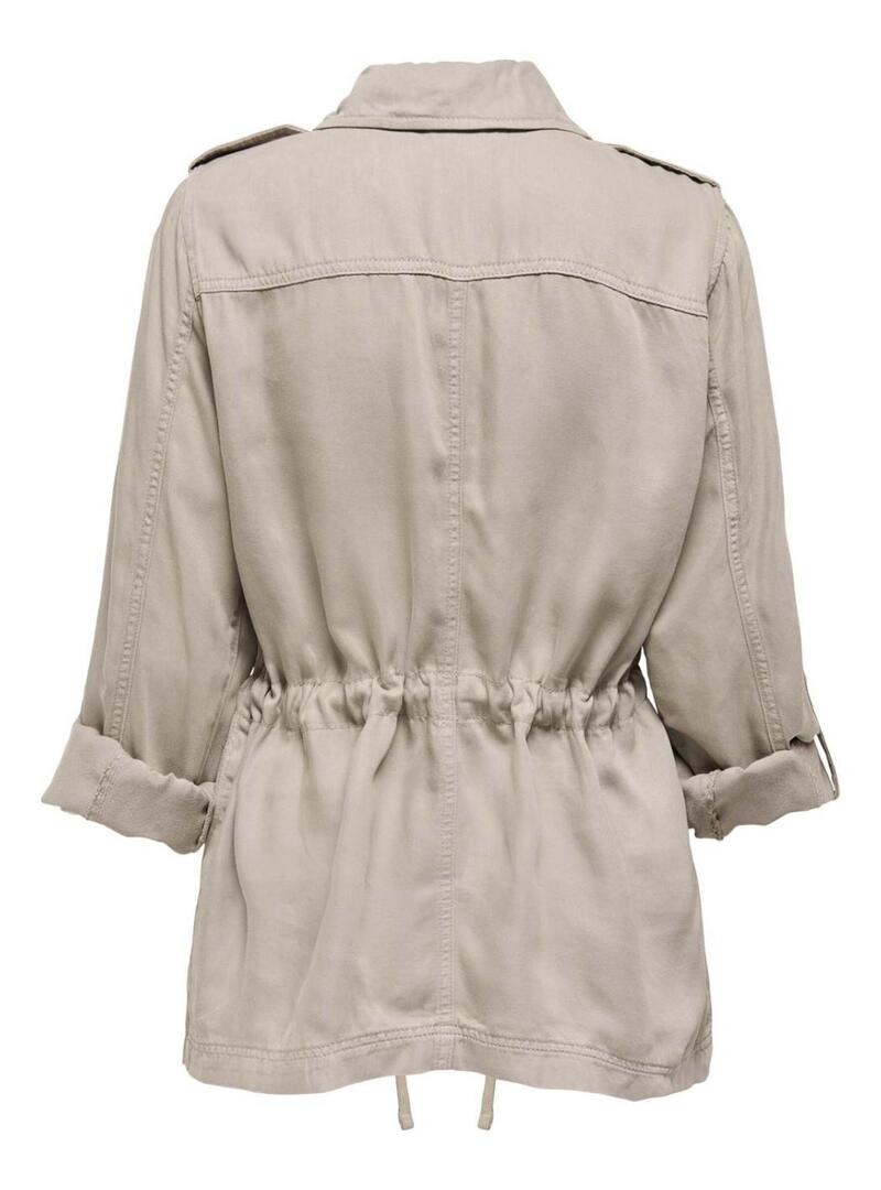 Giacca Only. Modello Kenya. Colore beige. Manica lunga. 4 tasche. Coulisse in vita. Chiusura lampo.
