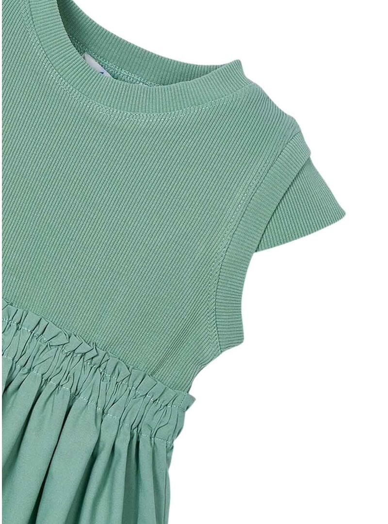 Vestito combinato Mayoral. Manica corta. Tessuto di canale elastico sul petto. Vita con elastico. Colore verde menta. Collo tondo.