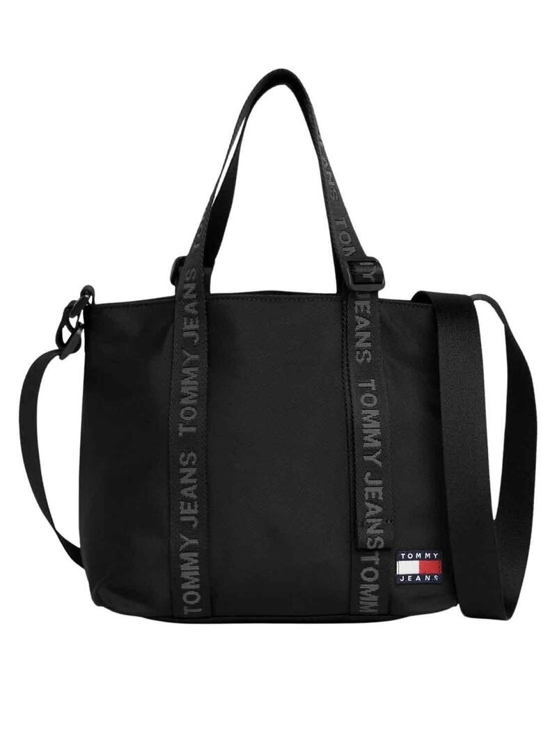Borsa Tommy Jeans. Modello Everywhere Flap. Colore nero. Chiusura a patta. Bottone a pressione. Logo metallico in colore argento. Manico superiore. Tracolla regolabile e rimovibile. Dimensioni: 22,5 × 5,5 × 13 cm.