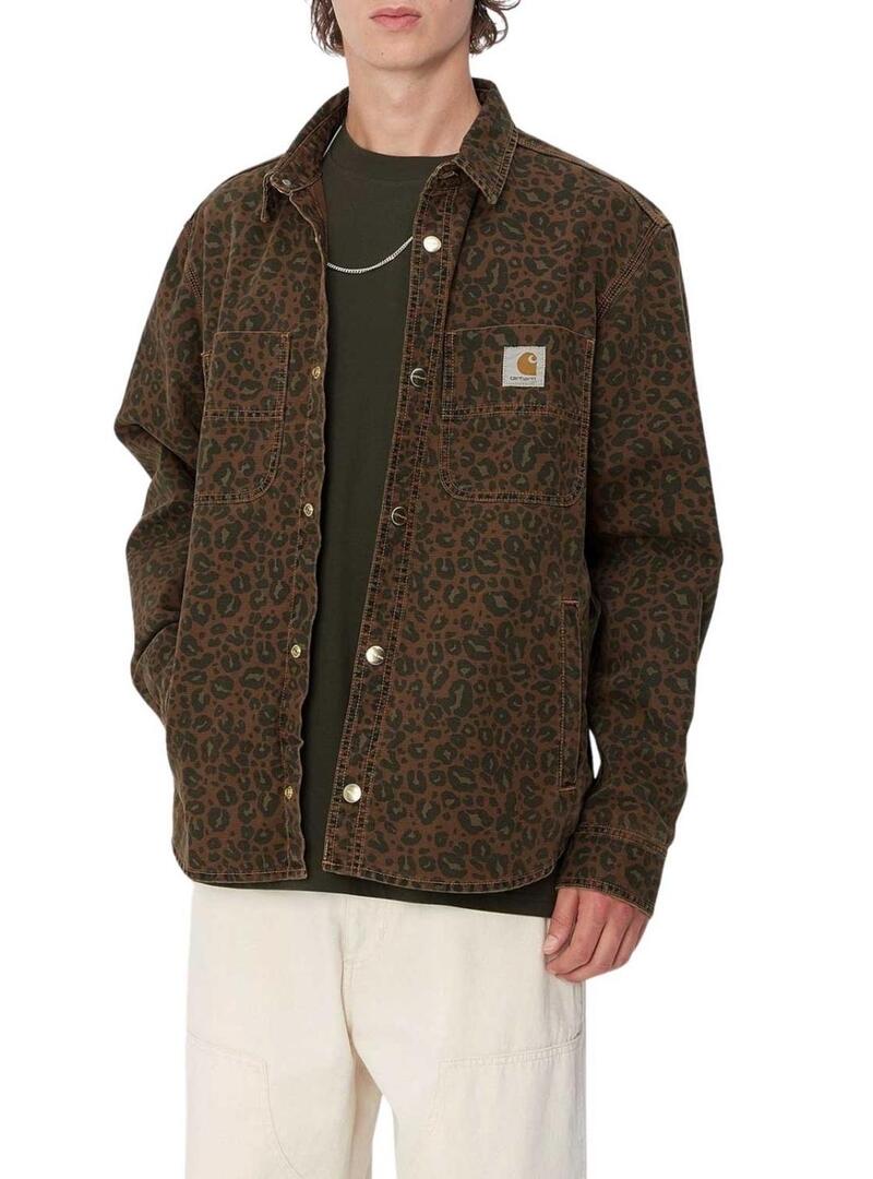 Giacca Carhartt. Modello Racer. Colore nero. Chiusura con zip. Colletto alla coreana. Tasche laterali. Taglio dritto. Logo ricamato sul petto in stile vintage. Illustrazione stampata sul retro in grigio.