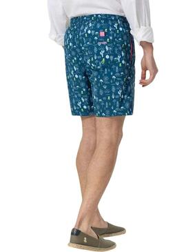 Costume da bagno El Pulpo stampato floreale blu per uomo.