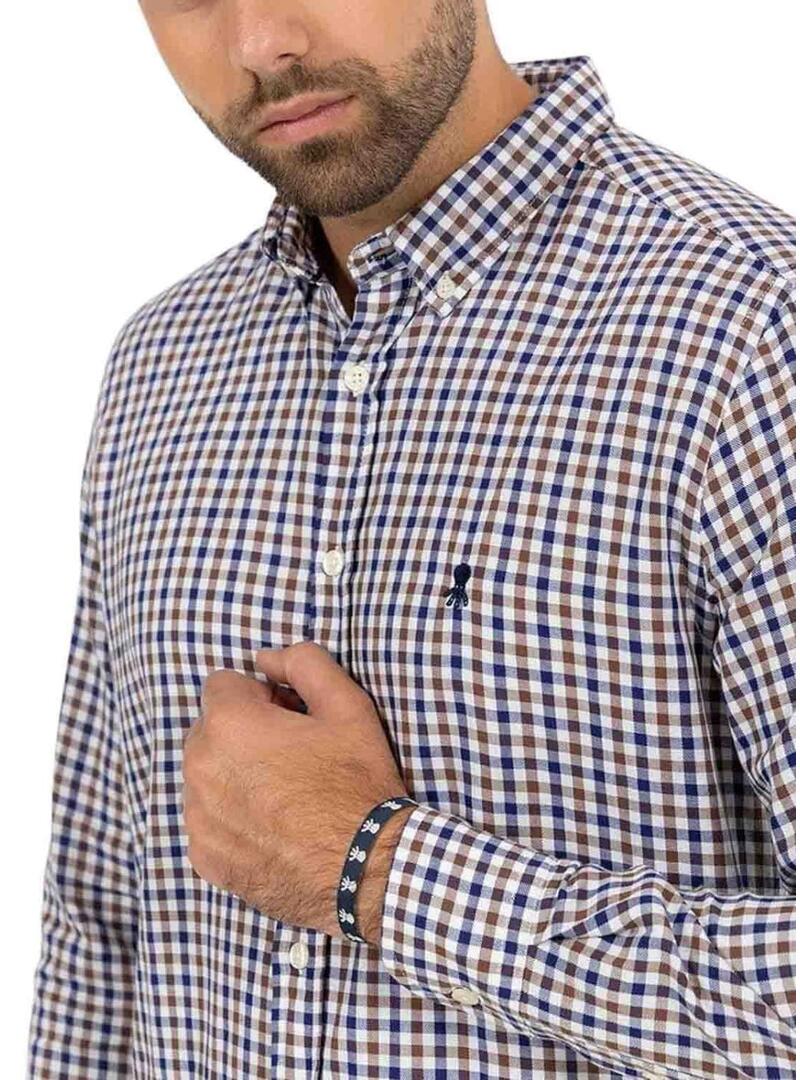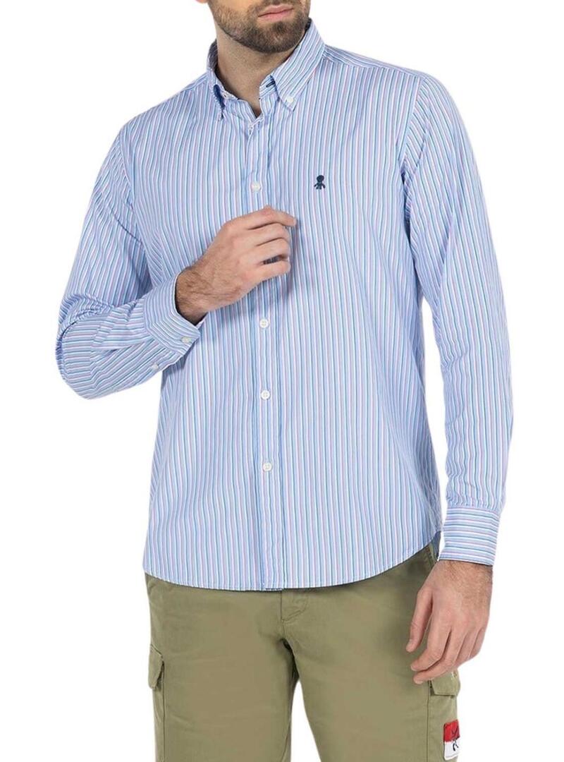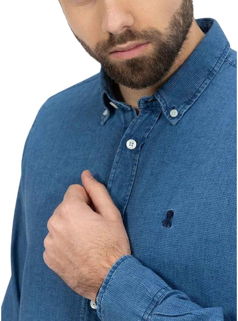 Camicia El Pulpo. Colore blu. Colletto con bottone. Tessuto oxford. Logo del marchio ricamato a contrasto sul petto. Manica lunga. Custom fit. Taglio leggermente aderente.