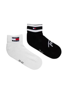 Pacchetto di 2 calze Tommy Jeans. Una nera con due bande nella parte superiore e il logo del marchio. Una bianca con il logo sulla caviglia. Logo sull'arco del piede. Unisex.