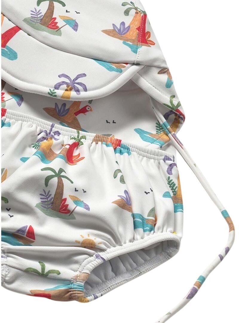 Set da bagno Mayoral. Colore rosso e bianco. Con cappuccio. Maglietta con chiusura a zip. Maniche a raglan. Colletto rotondo. Stampa estiva.