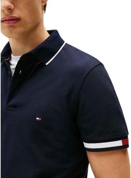 Polo Tommy Hilfiger Flag Cuff blu scuro per uomo