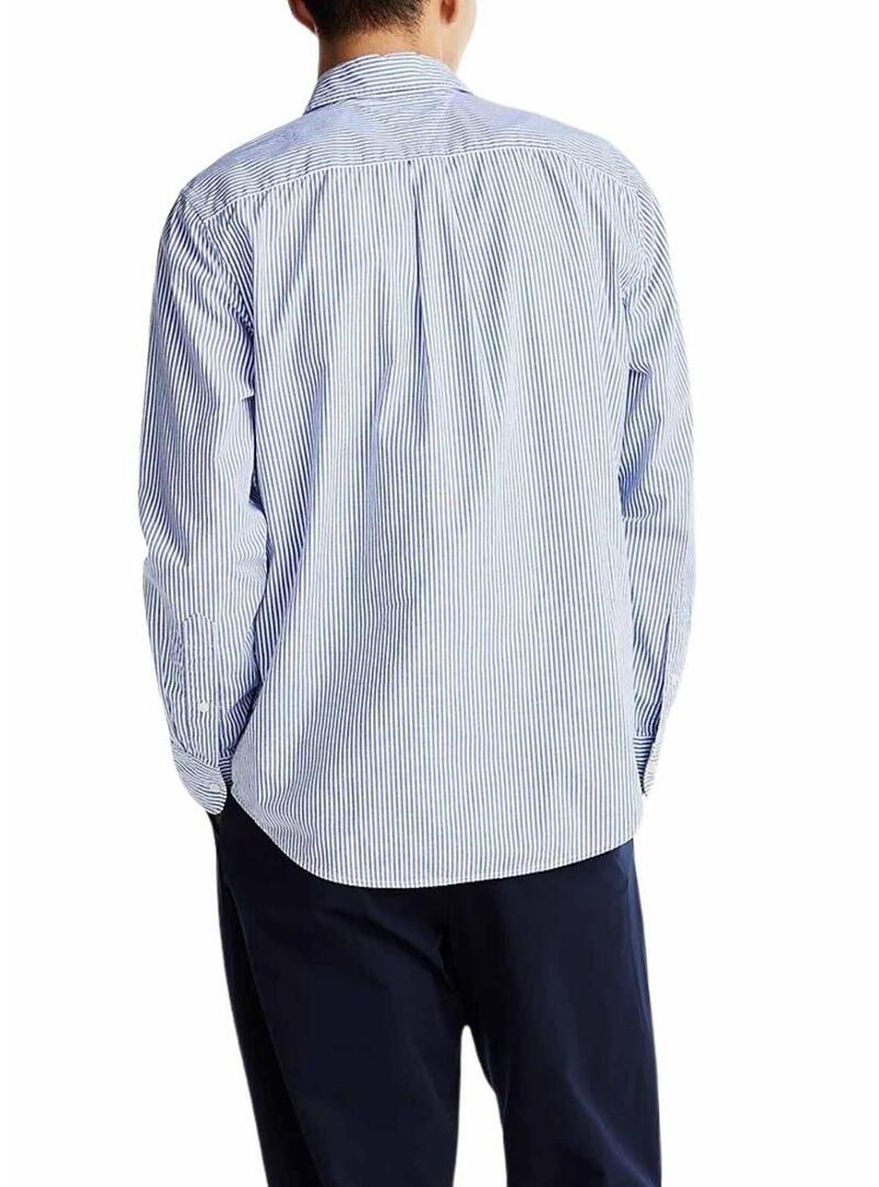 Camicia Tommy Hilfiger. Modello a righe. Colore blu scuro. Chiusura con bottoni. Logo ricamato. Vestibilità classica. Fondo arrotondato. Manica lunga. Colletto con bottoni.