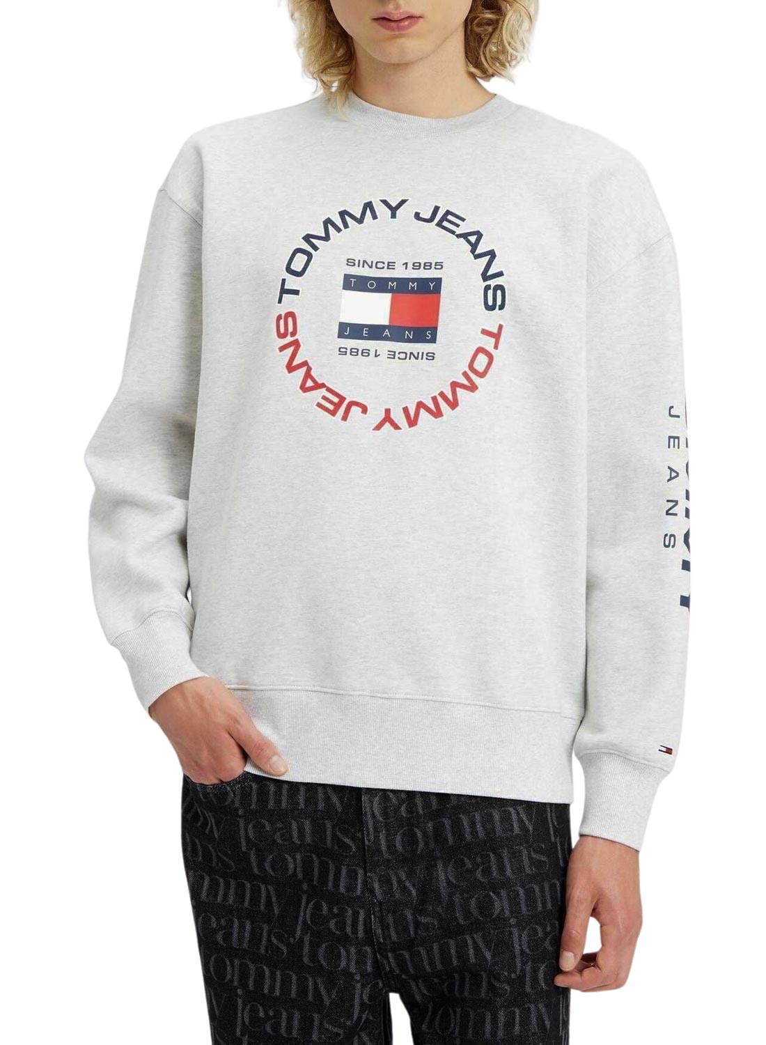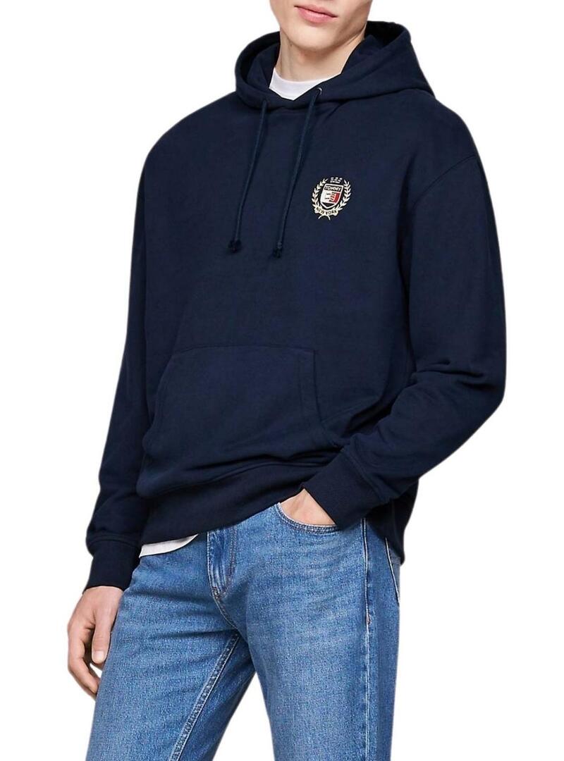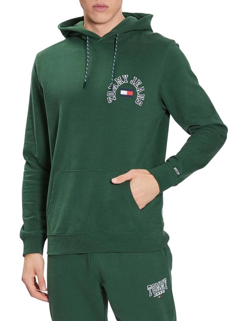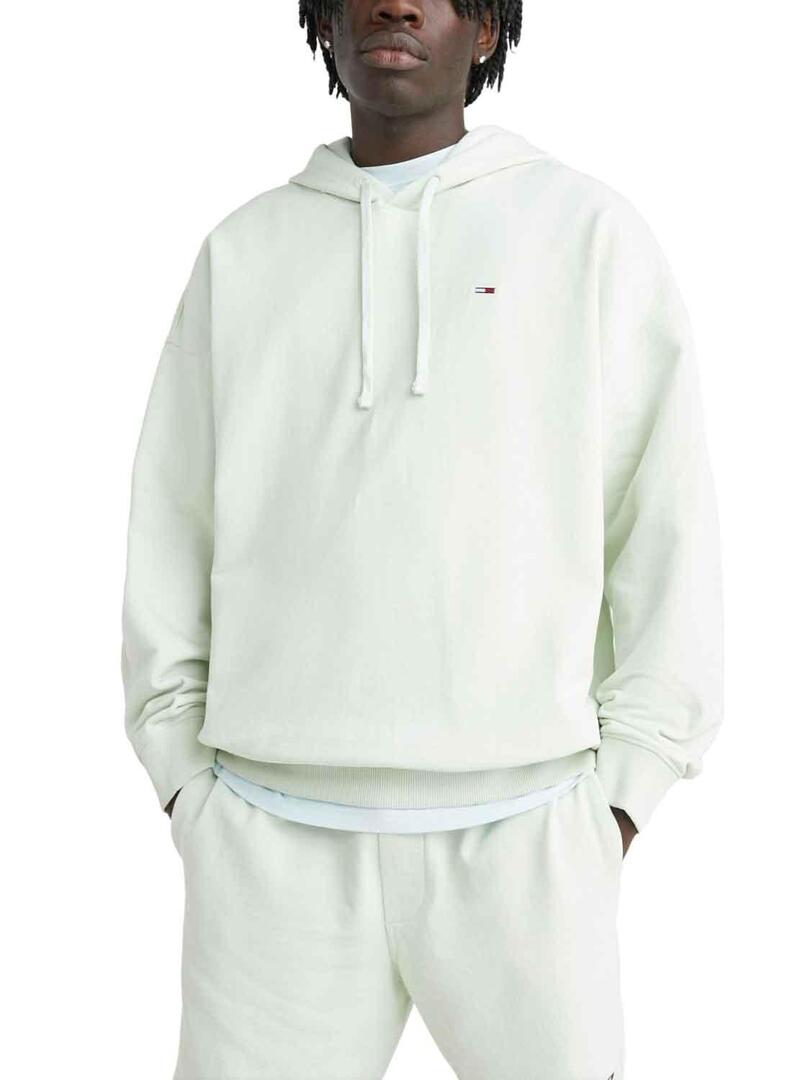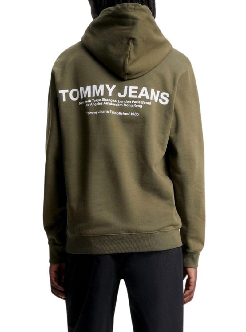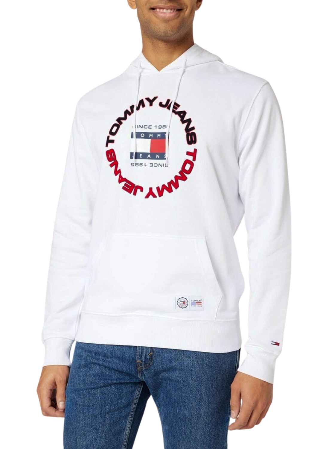 Felpa Tommy Jeans. Modello Austin. Colore beige. Cappuccio con cordino regolabile. Logo stampato sul petto e sulla schiena in tre colori. Tasca a marsupio. Bandiera ricamata sulla manica. Vestibilità ampia.