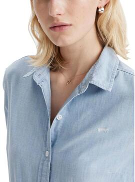 Camicia Levis. Modello The Classic. Colore blu. Denim chiaro. Chiusura con bottoni. Vestibilità regolare. Logo ricamato sul petto. Stile basic.