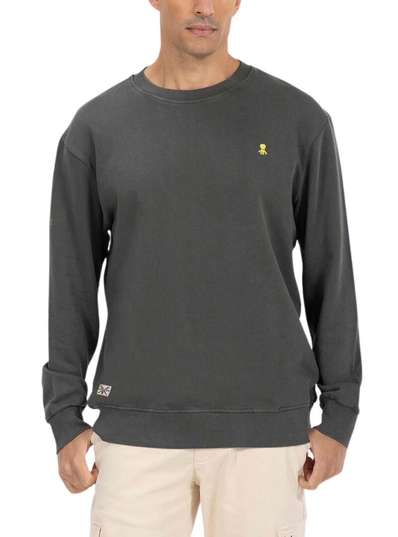 Felpa El Pulpo. Modello Enjoy. Colore grigio antracite. Collo rotondo. Estremità a costine. Vestibilità regolare. Illustrazione stampata sul petto e sulla schiena.