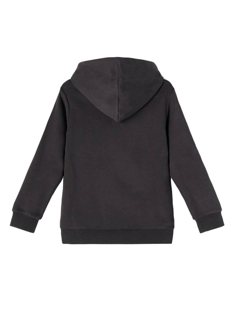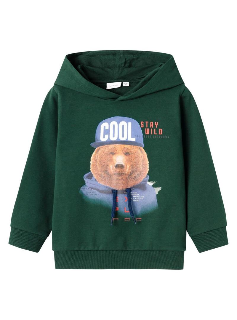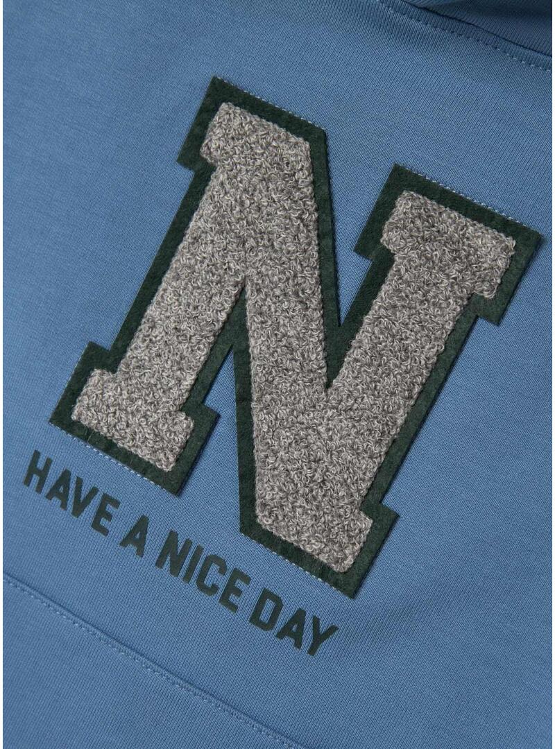 Felpa Name It. Modello Hepaw. Vestibilità regolare. Chiusura principale con zip. Polsini e fondo elastici. Con cappuccio. Spalle cadenti. Stampa sul retro.