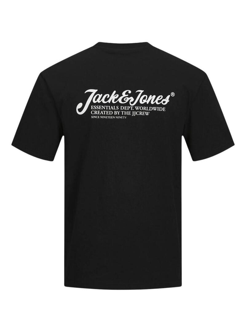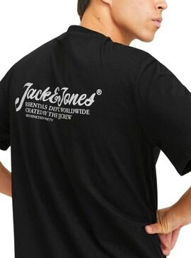 Maglietta Jack and Jones. Modello Beau. Colore nero. Collo rotondo. Manica corta. Vestibilità leggermente oversize. Logo stampato sul petto e sulla schiena. Dettagli in bianco. Ispirazione vintage.