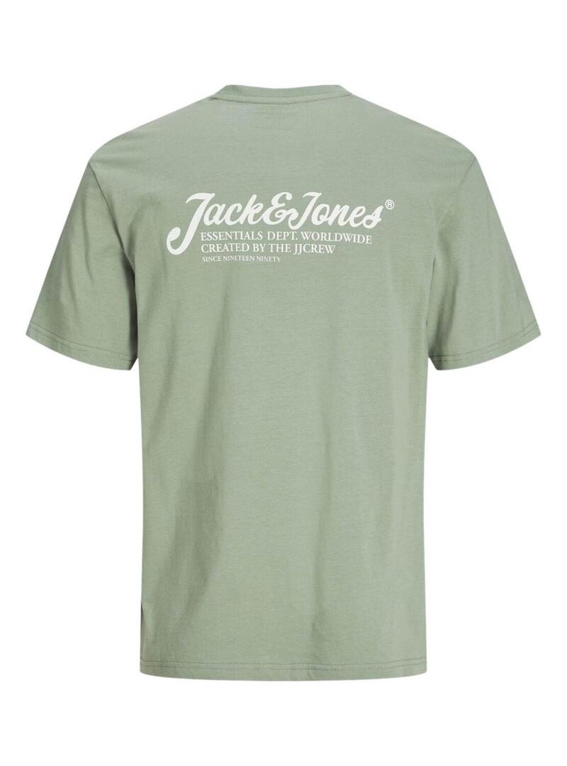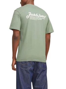 Maglietta Jack and Jones. Modello Beau. Colore verde. Collo rotondo. Manica corta. Vestibilità leggermente oversize. Logo stampato sul petto e sulla schiena. Dettagli in bianco. Logo in stile vintage.