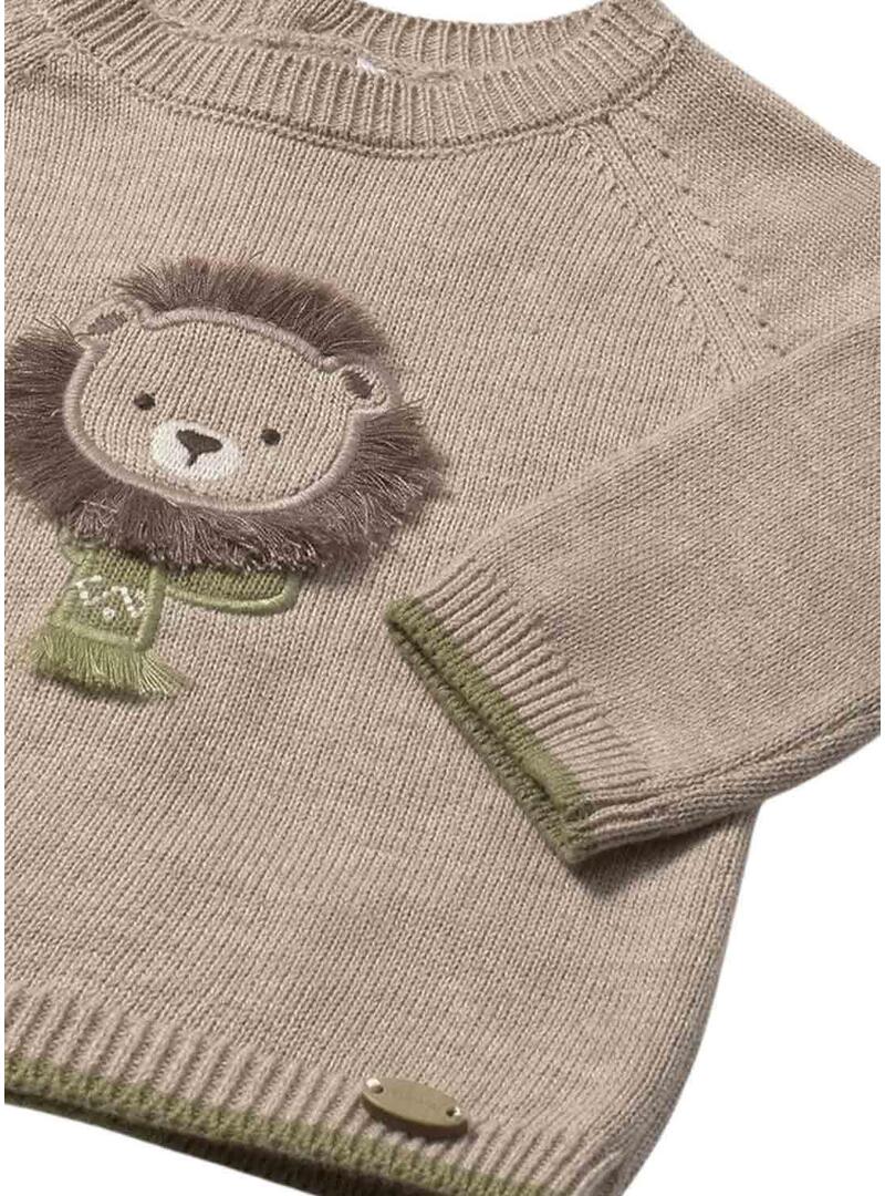Set 3 pezzi Mayoral. Maglia a manica lunga. Colore tostato. Collo rotondo. Bottoni a pressione sulla spalla. Dettagli ricamati. Pantaloncini corti verdi. Chiusura con un bottone. Vita elastica. Bordo con risvolto. Tasche decorative. Collant densi.