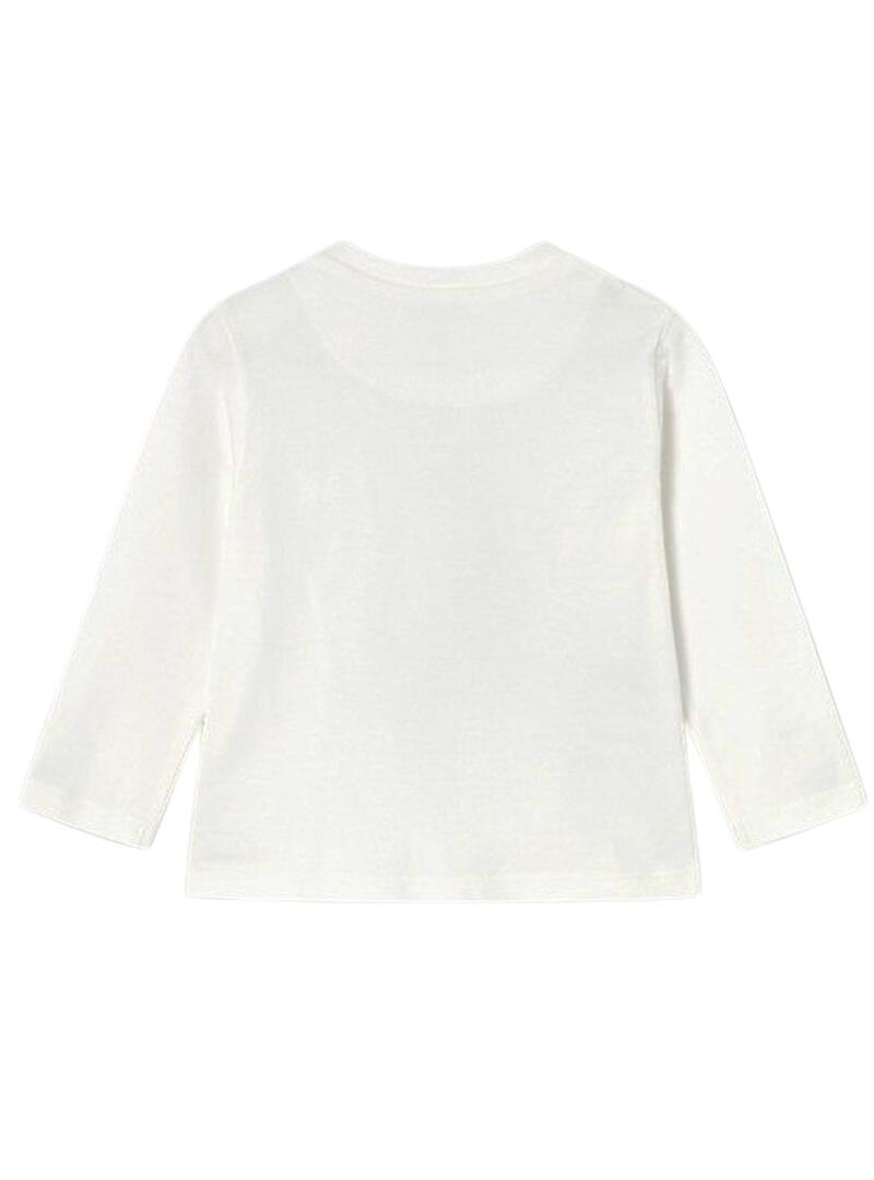Maglietta Mayoral. Colore bianco. Manica lunga. Per neonato. Collo rotondo. Bottoni a pressione sulla spalla. Motociclista stampato sul davanti.