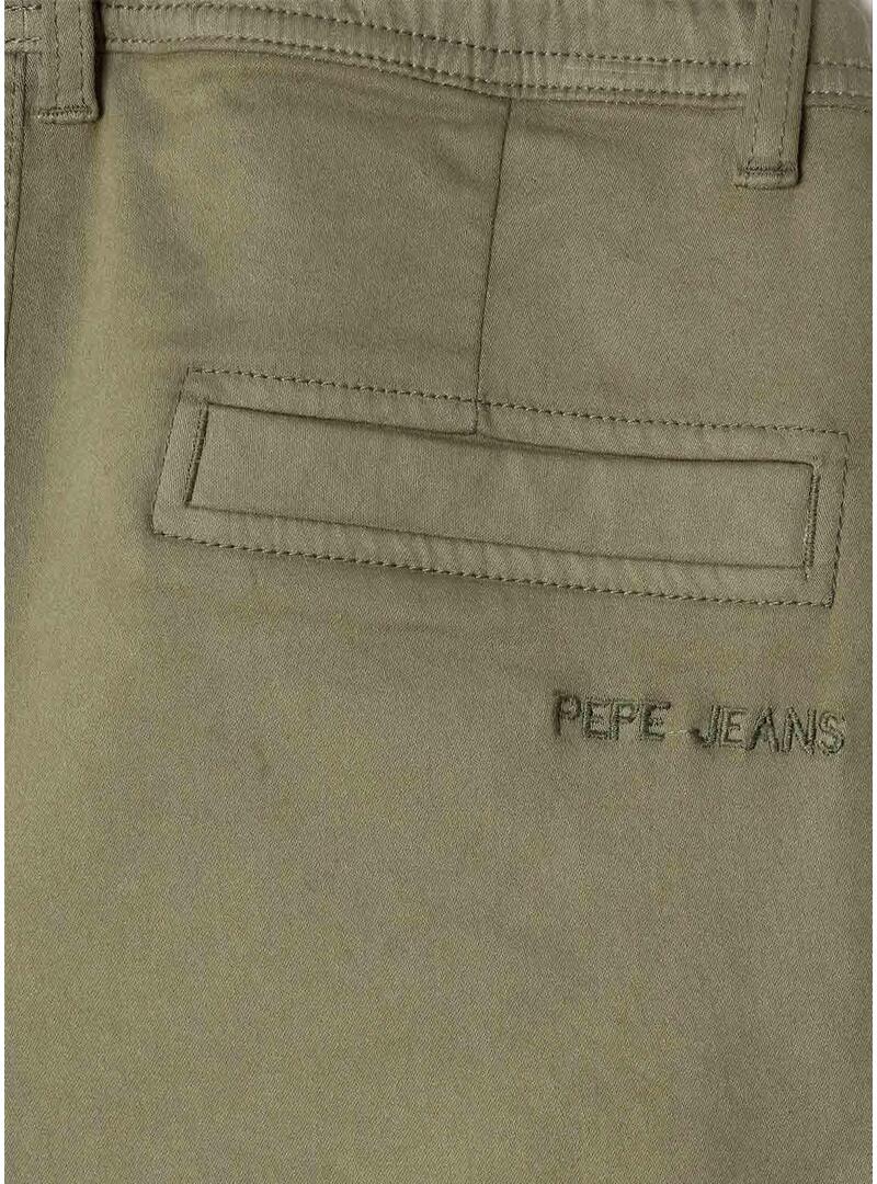 Pantaloni Pepe Jeans. Colore verde. Cargo. Tessuto elastico. Fit slim. Vita elastica con coulisse regolabile. Chiusura con zip e bottone. Tasche cargo laterali con patta. Tasche posteriori. Logo ricamato sulla tasca posteriore.