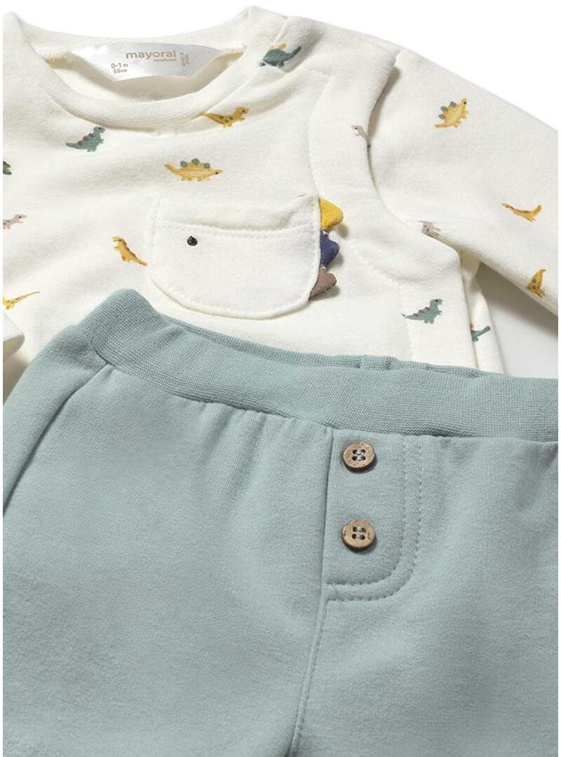 Set Mayoral. Quattro pezzi. Per neonati. Due set di felpa e pantaloni lunghi abbinabili. Felpa a maniche lunghe. Collo rotondo. Stampe di dinosauri. Pantaloni lunghi sportivi. Vita elastica. Fondo elastico.