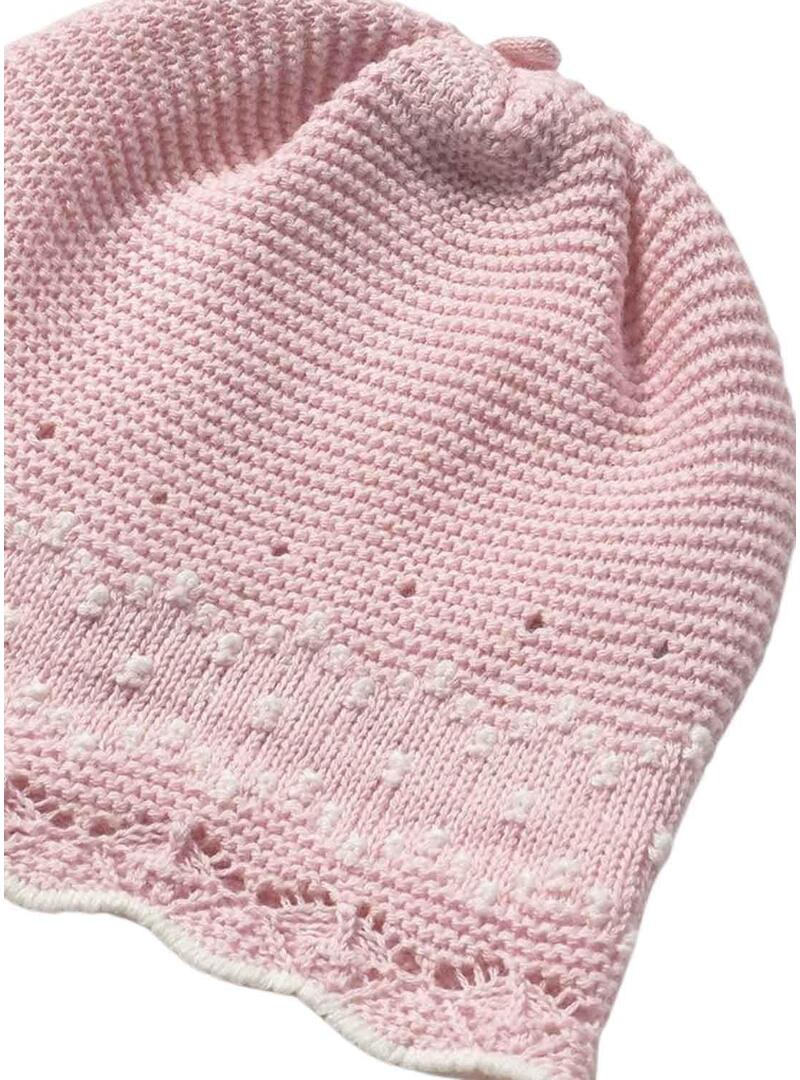 Set Mayoral 3 pezzi. Colore rosa. Tessuto a maglia tricot morbido e piacevole al tatto. Maglia a maniche lunghe per neonata. Chiusura con bottoni sul retro. Pantaloni con piedi tipo polacchino. Vita elastica. Cappello rosa con dettagli bianchi.