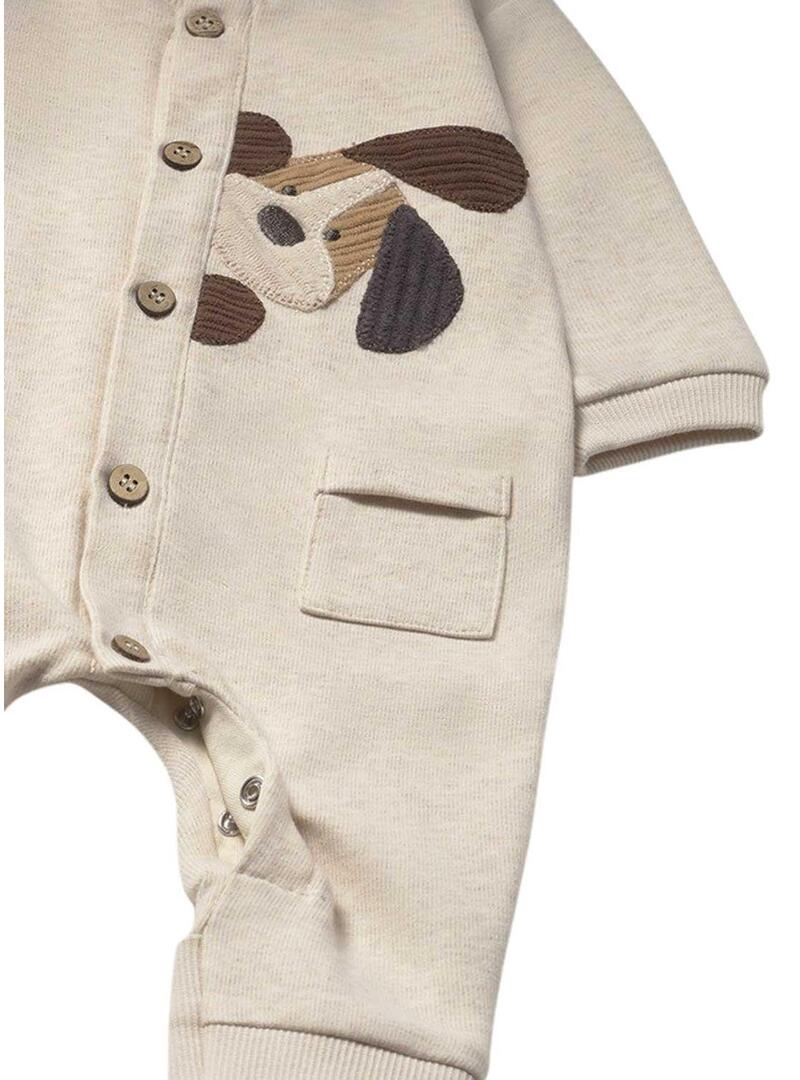 Tuta Mayoral. Maniche lunghe. Per neonato. Collo rotondo. Chiusura con bottoni sul davanti. Chiusura con bottoni sull'inguine. Tasche decorative. Cane ricamato sul davanti.