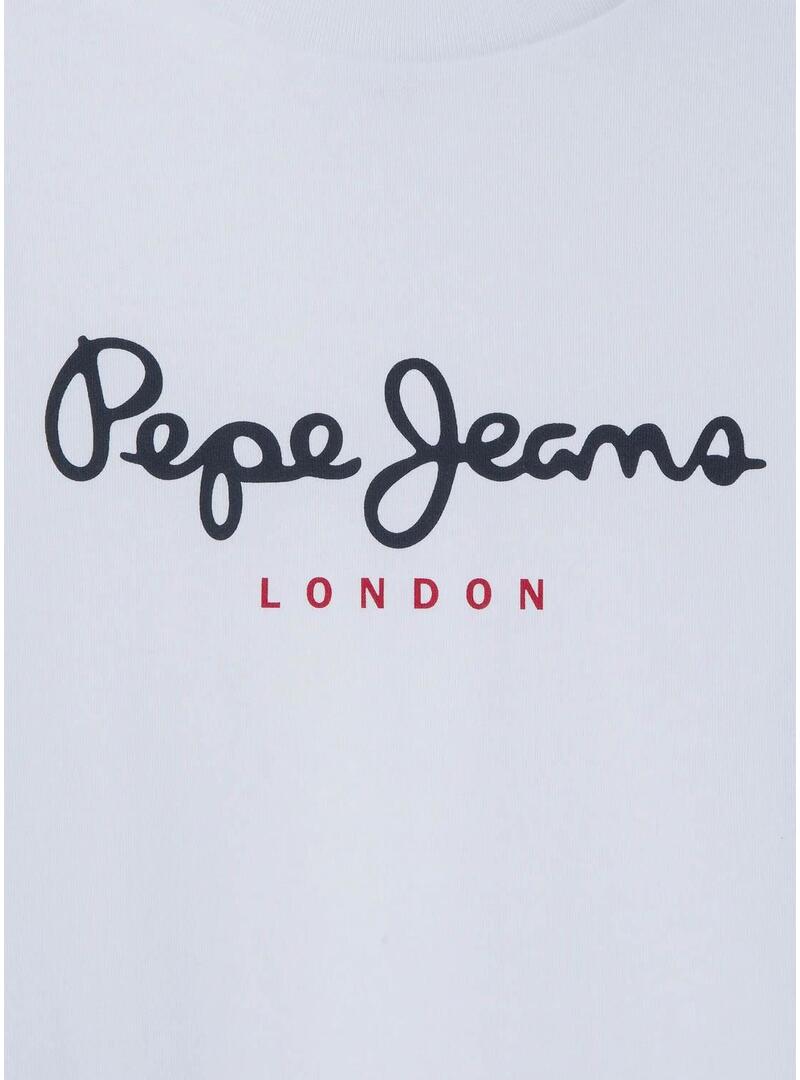 Maglietta Pepe Jeans. Colore bianco. Logo di Pepe Jeans stampato sul petto. Vestibilità regolare. Manica lunga. Collo rotondo. Finitura a doppio punto. Nastro a contrasto all'interno del collo.