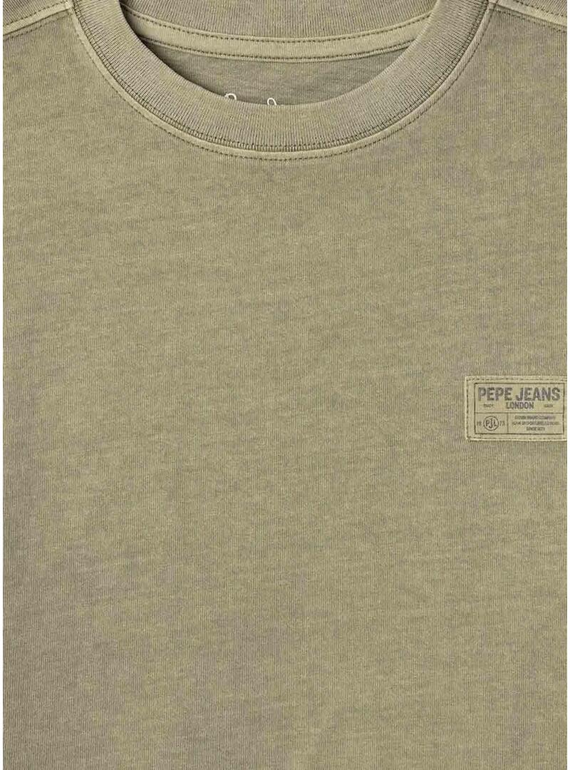 Maglietta Pepe Jeans. Colore verde. Manica lunga. Collo rotondo. Spalle cadenti. Taglio rilassato. Effetto lavato. Etichetta del marchio sul petto.