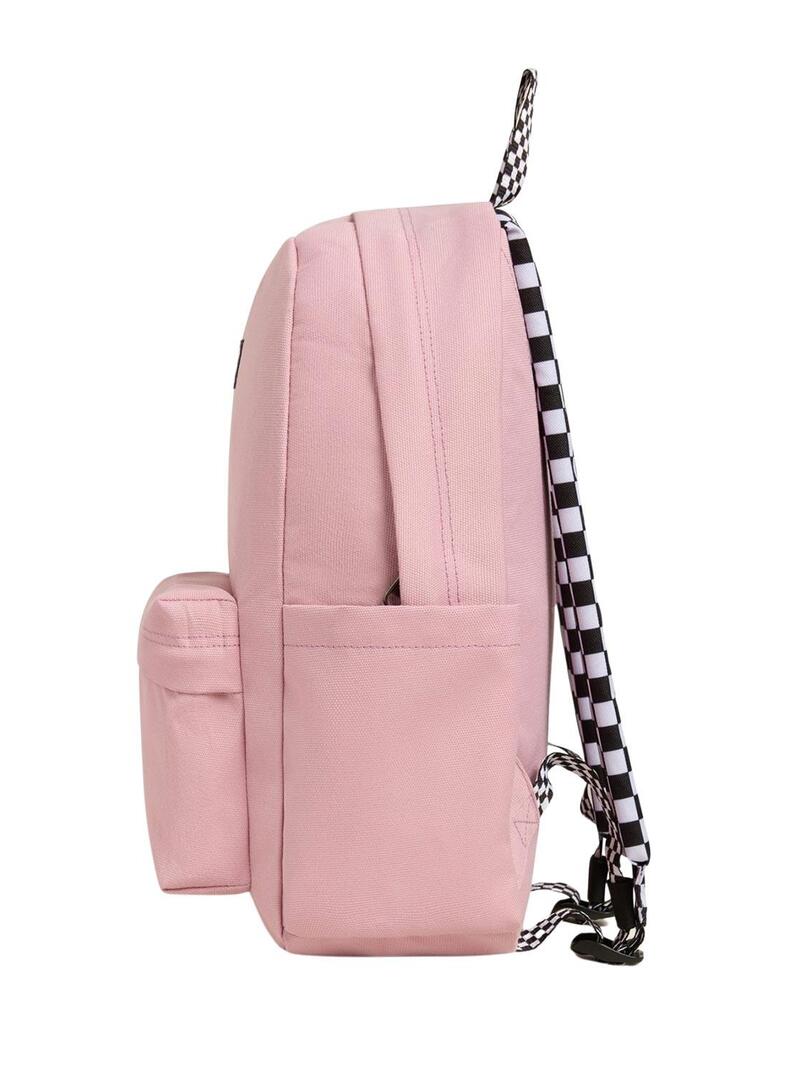 Zaino Vans Old Skool. Colore rosa. Ampio scomparto principale. Tasca frontale con zip. Tasca interna. Tasca laterale. Maniglia superiore stampata. Tracolle regolabili a quadretti. Misure: 15,5 x 11,5 x 4,5. Capacità: 18 litri.