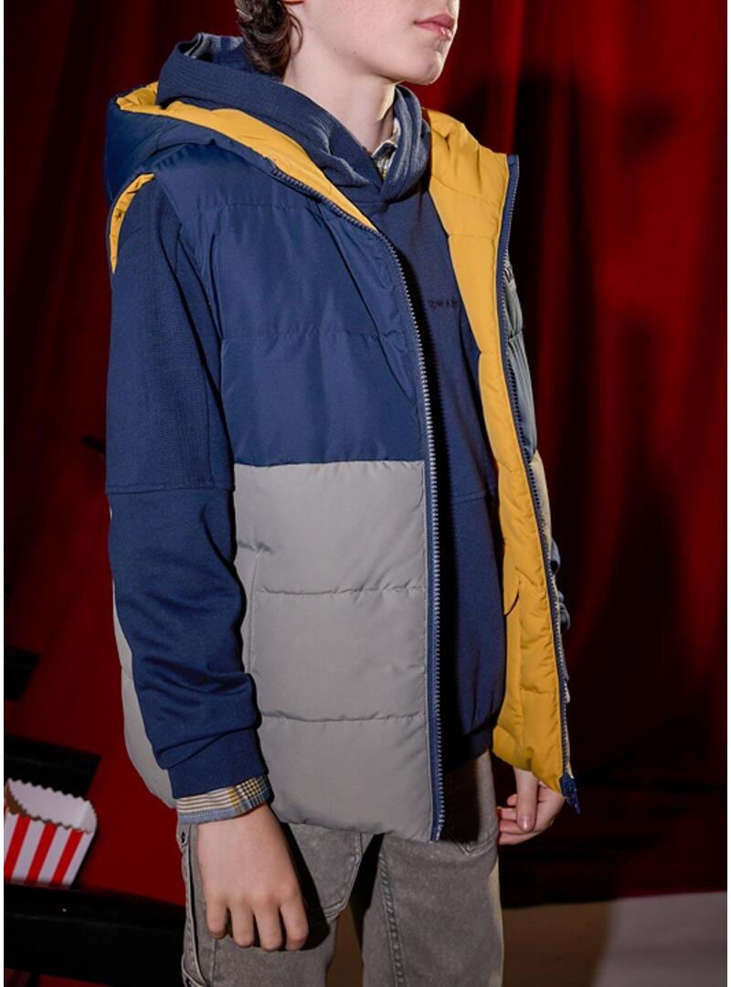 Gilet Mayoral. Reversibile. Bicolore. Interno color giallo. Con cappuccio. Chiusura anteriore con zip. Morbido rivestimento interno. Tasche nella parte anteriore.
