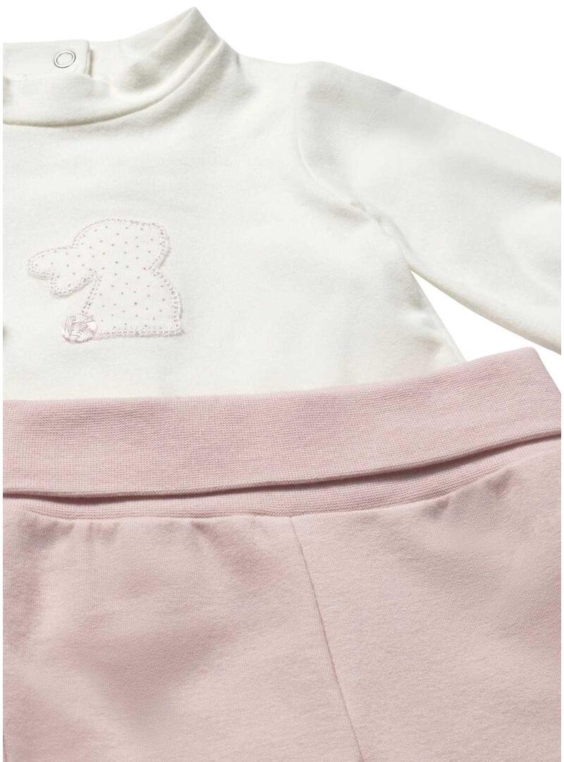 Tuta Mayoral. 3 pezzi. Felpa a maniche lunghe. Chiusura con zip. Collo rotondo. Volant decorativi. Maglietta bianca. Maniche lunghe. Collo a dolcevita. Con bottoni a pressione sul retro. Ricami sul davanti. Pantaloni lunghi.