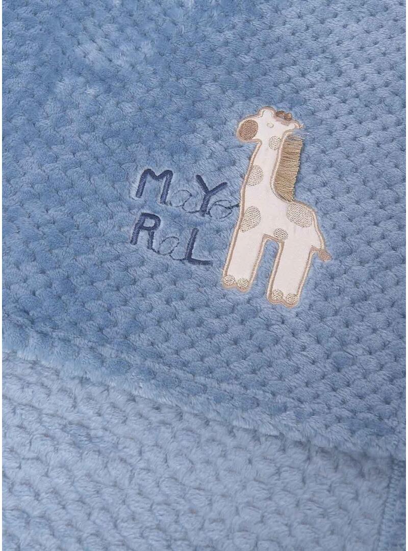 Coperta Mayoral. Tessuto a doppio pelo. Morbida e piacevole. Colore blu. Per neonati. Dettaglio ricamato.