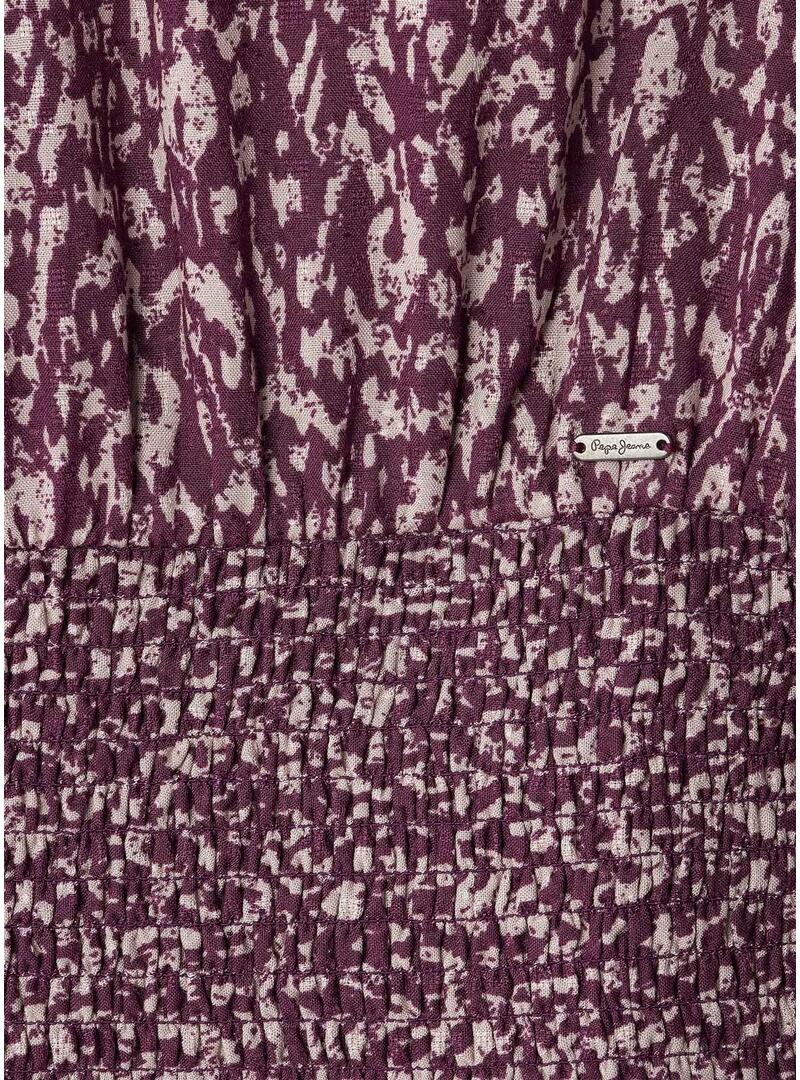 Abito Pepe Jeans. Taglio corto. Tessuto fluido. Collo rotondo. Chiusura con apertura sulla schiena. Manica lunga a sbuffo. Stampato floreale. Vita elasticizzata con pannello arricciato. Dettaglio di volant. Con fodera. Targhetta metallica con logo in vita.