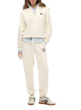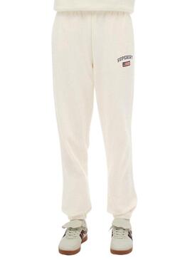 Pantaloni sportivi Superdry. Modello Athletic. Colore beige. Stile jogger. Vita e orli elastici. Tasche laterali. Logo ricamato sui fianchi con bandiera. Taglio slim.